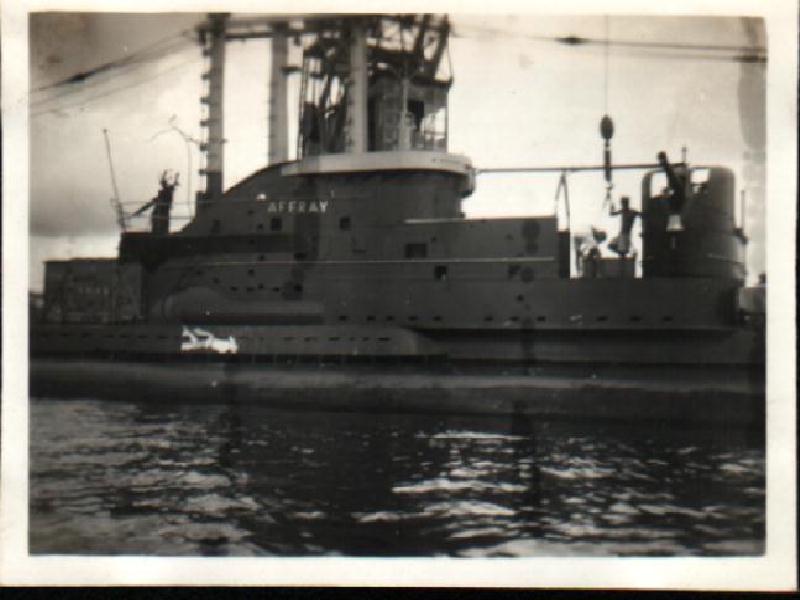 HMSub Affray taking on supplies at Naval Base Singapore 1947.