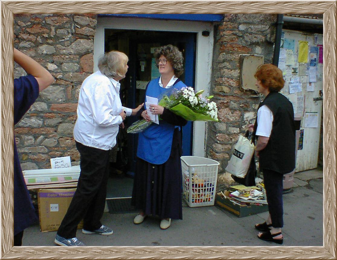 Heather making presentation to Christine (Retirement from Sue Ryder Shop)